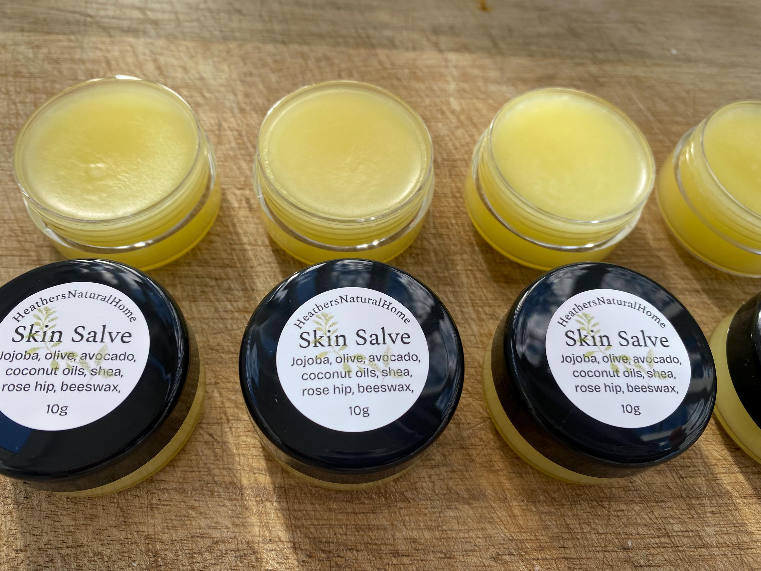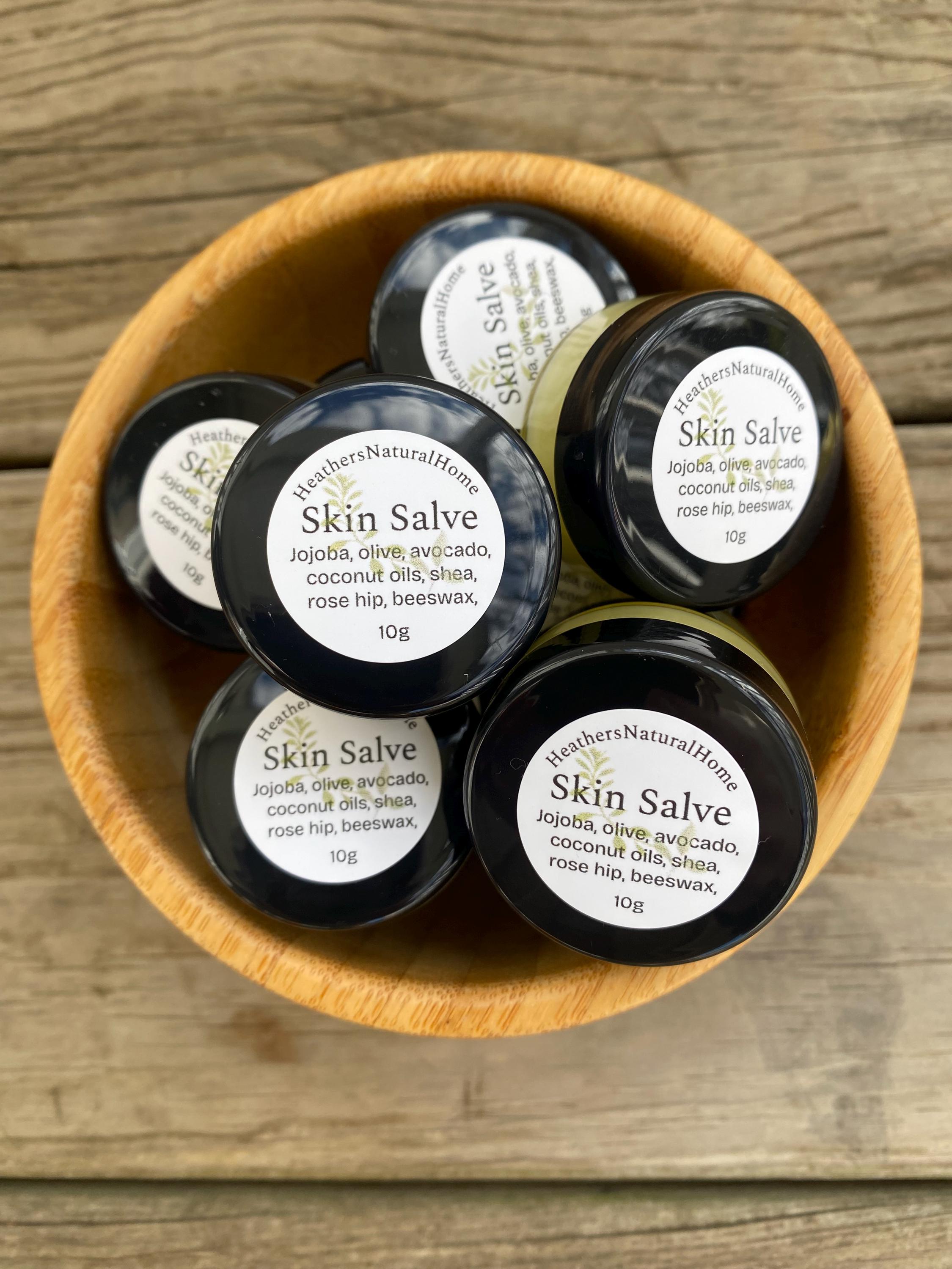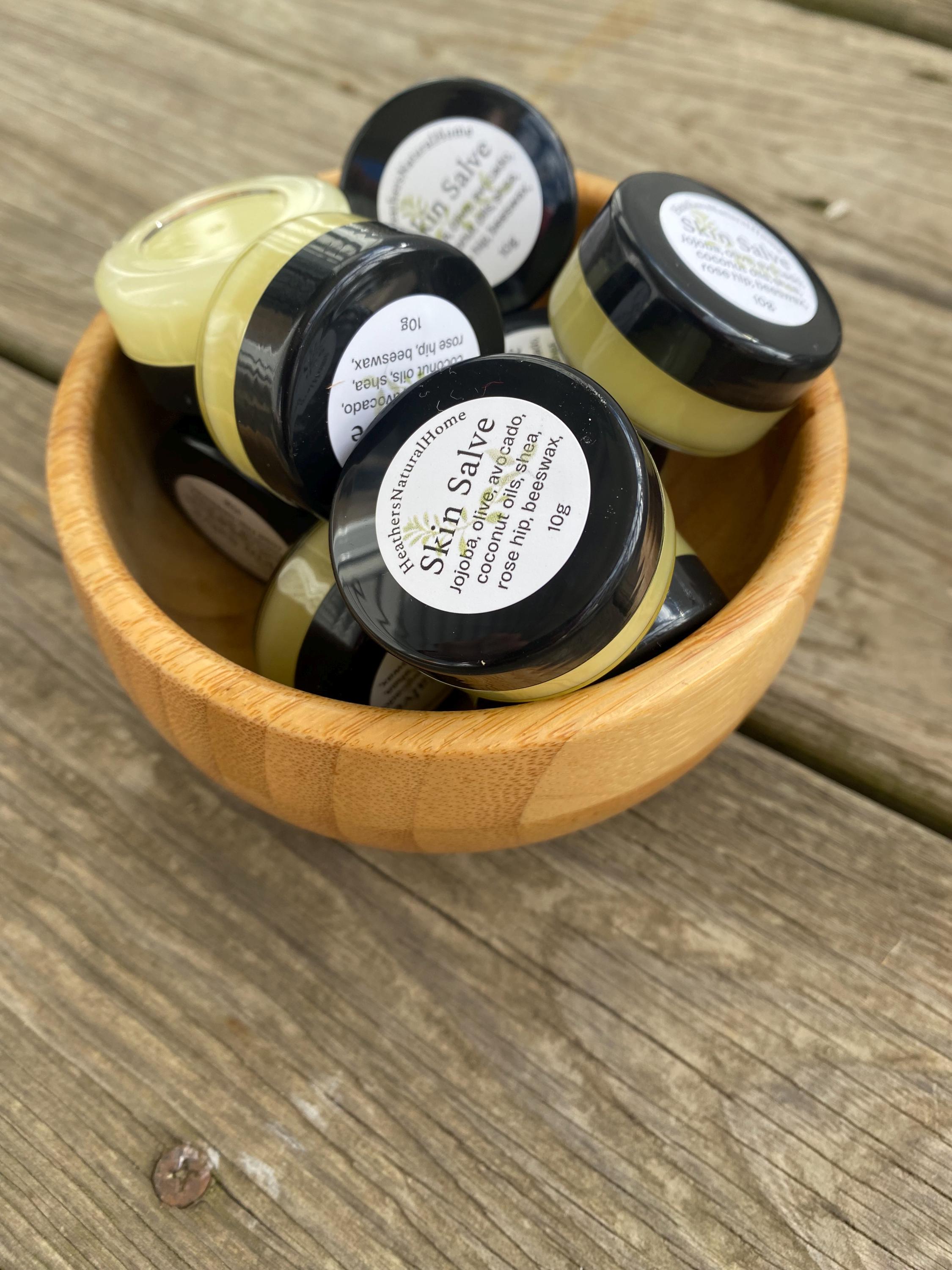 This set includes 5 of my mini .5oz skin salves. These are great for giving as gifts or throwing in your purse.... diaper bag etc. Great for the dry winter months! I use as a lip balm, dry skin hand relief, and all over body salve.