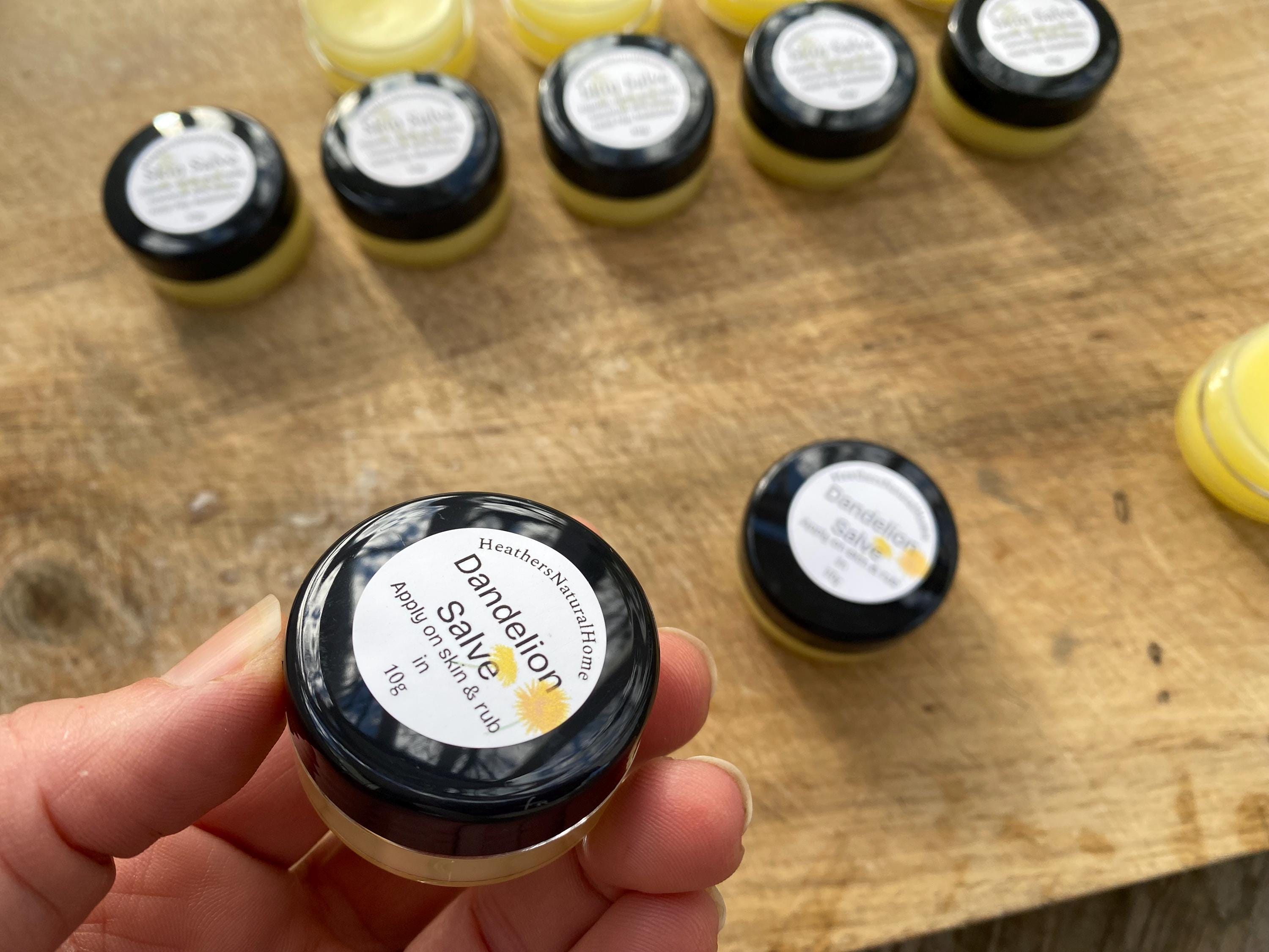 5 Piece Mini Skin Salves, Dandelion Mini Salve, Sample Size Salves, Natural Herbal Skin Salve, Dry Hand Salve, Herbal Salve, Dry Skin Salve